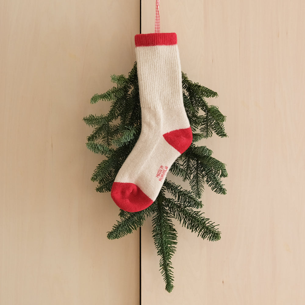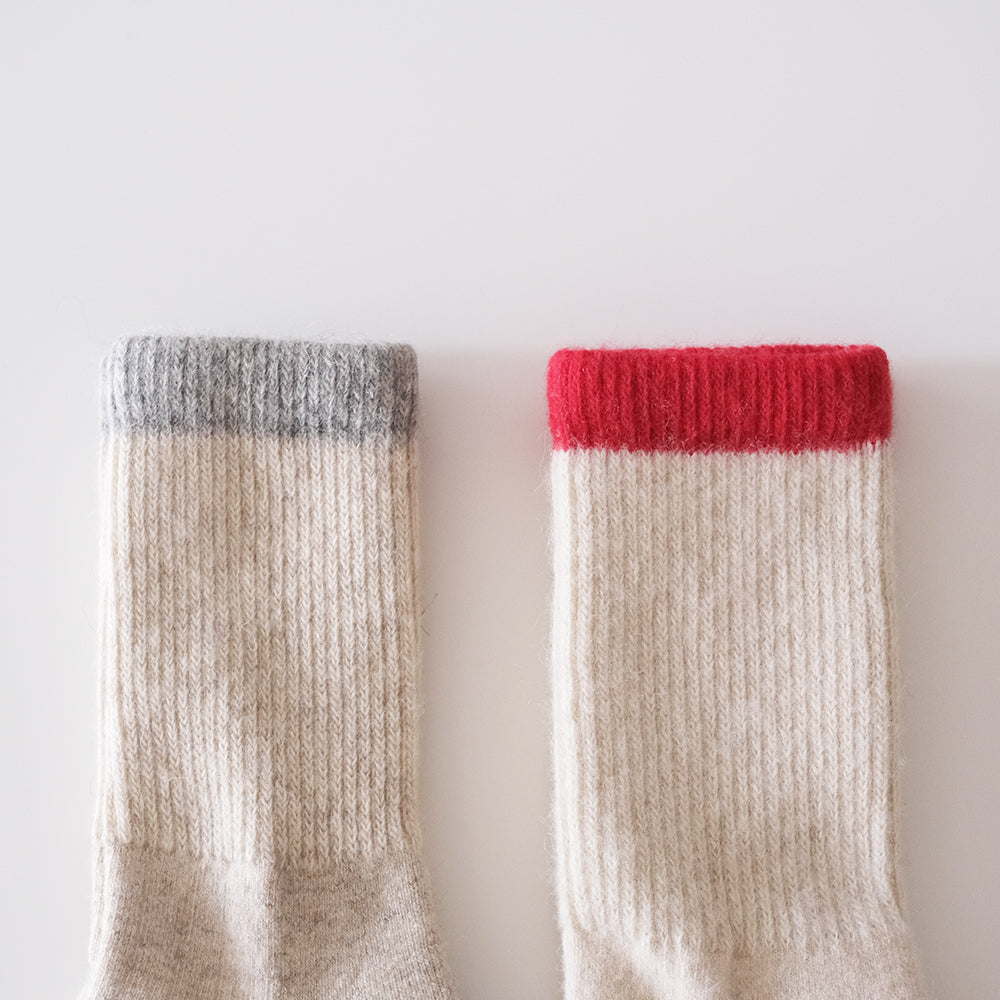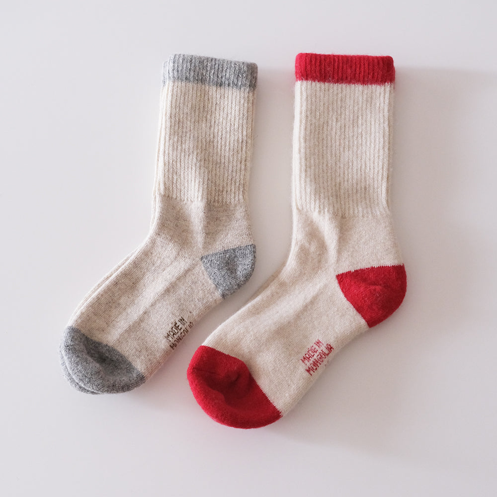 履いた瞬間にぽかぽかあたたかい天然のひつじウール。ただあたたかいだけでなく、蒸れずにあたたかさを保ってくれるので快適そのもの。履き口とかかと、つま先の色が切り替わったデザインが可愛く、クリスマスのプレゼントにもおすすめです◎