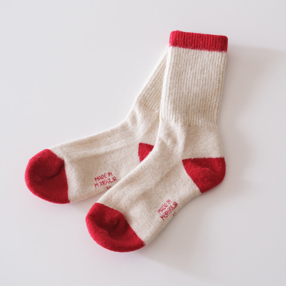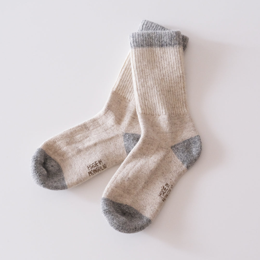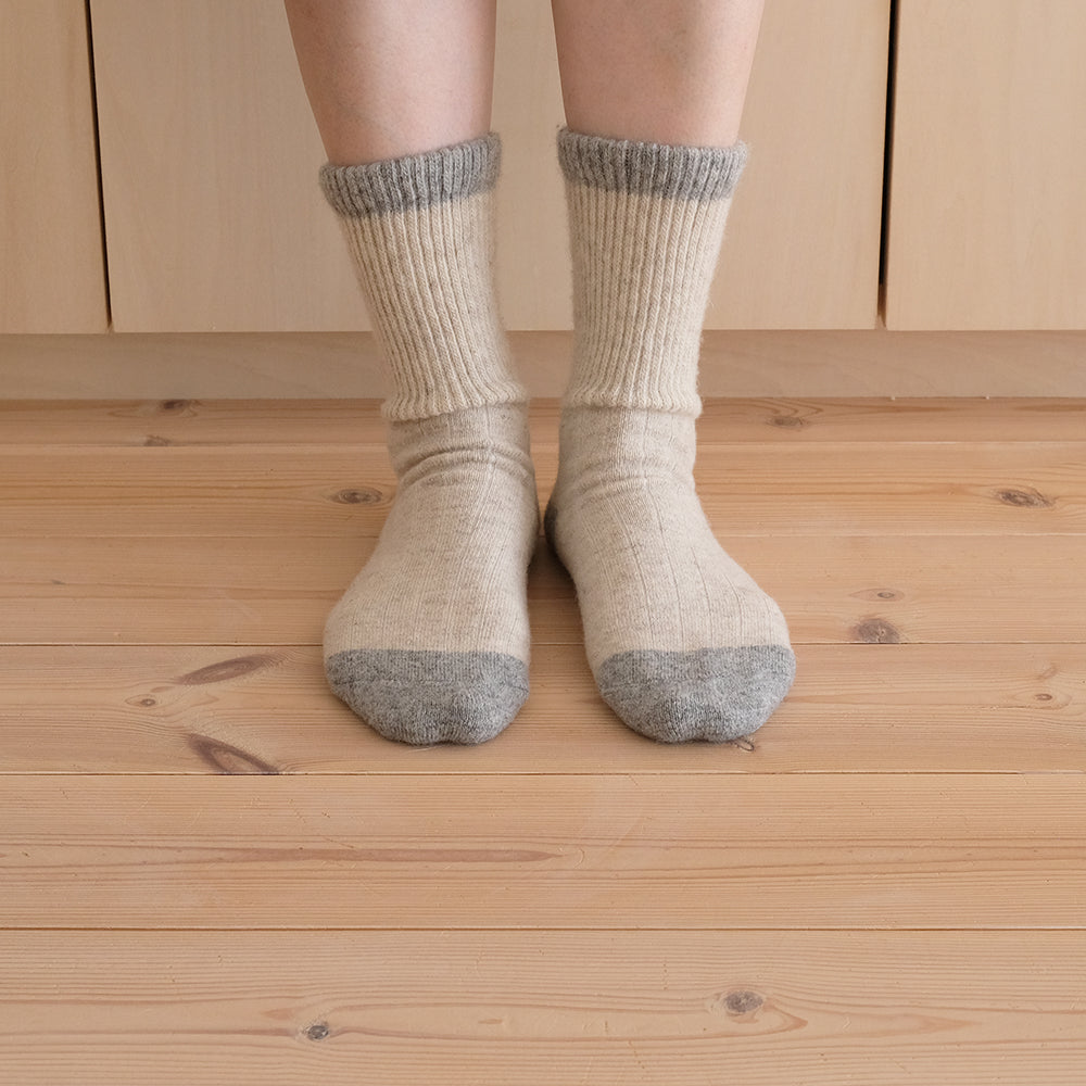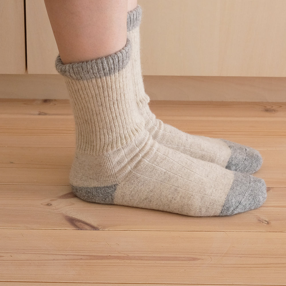 ひつじのナチュラルウールのソックス。こちらもヤクウールに負けず劣らずの柔らかさとあたたかさを感じる靴下です。