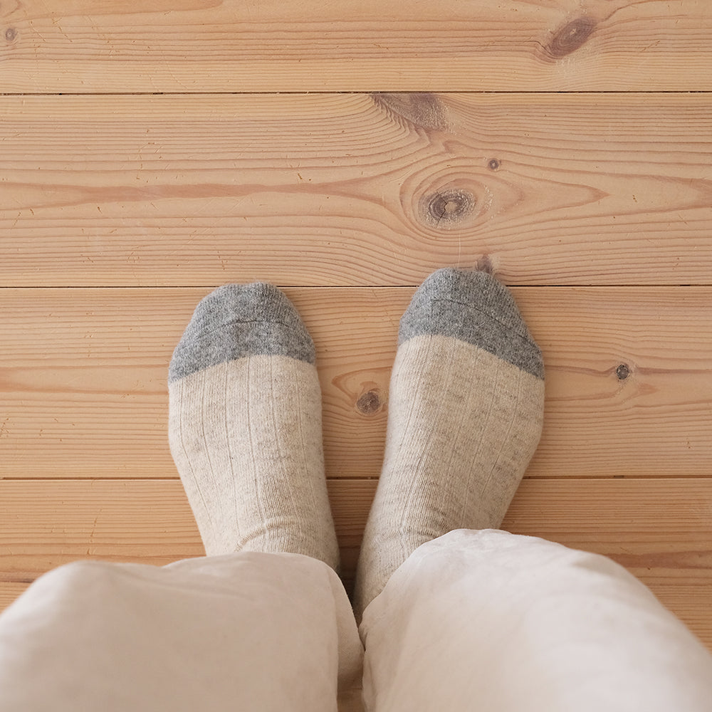 ほどよいフィット感もあり心地いい履き心地の靴下。真冬の寒い日もほんわかと足元を包み込み、幸せな気持ちにさせてくれます。