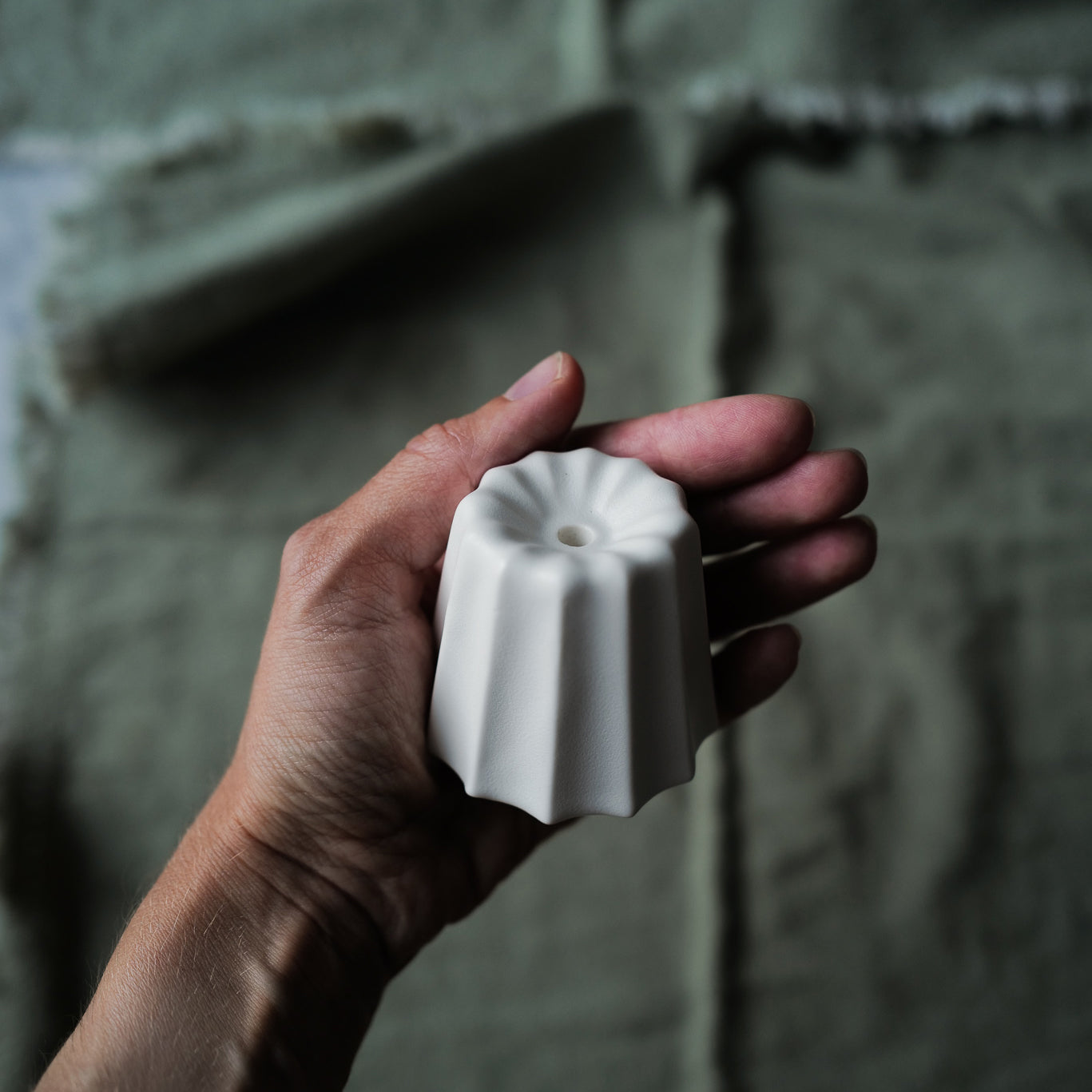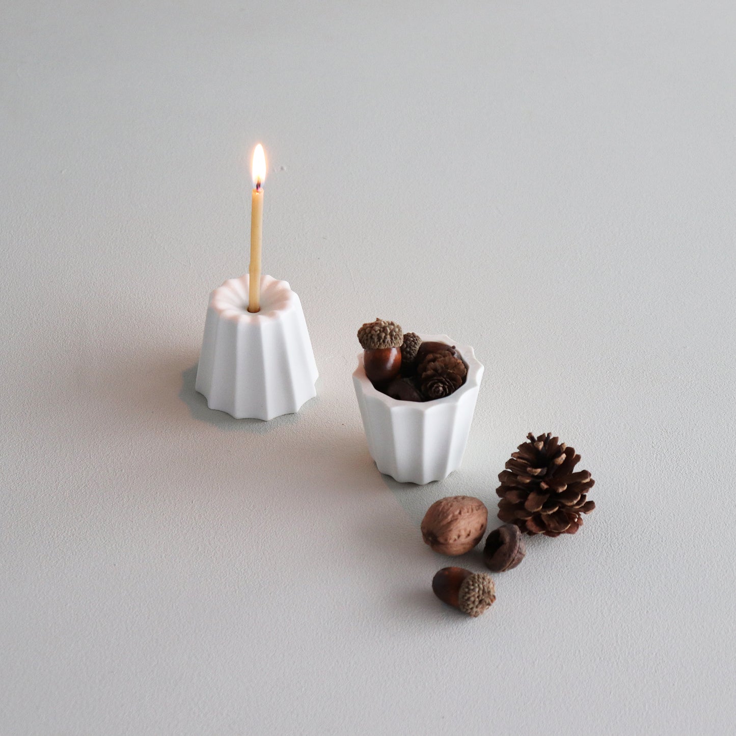 小さなカヌレキャンドルホルダーと並べたり、他のホルダーと食卓に並べてもかわいいですよ。磁器でつくられた小さなカヌレ型。キャンドルと合わせてプレゼントにもおすすめです◎
