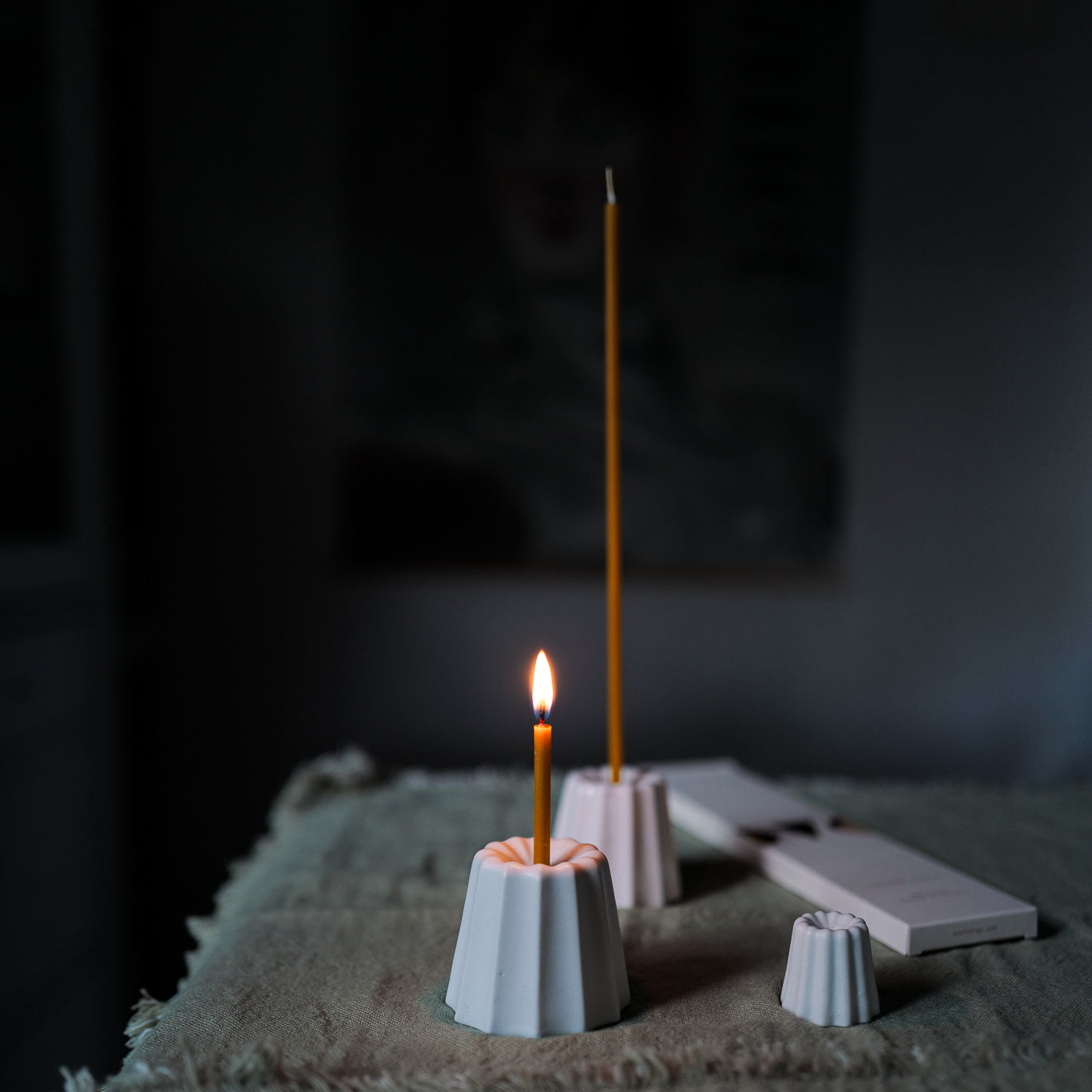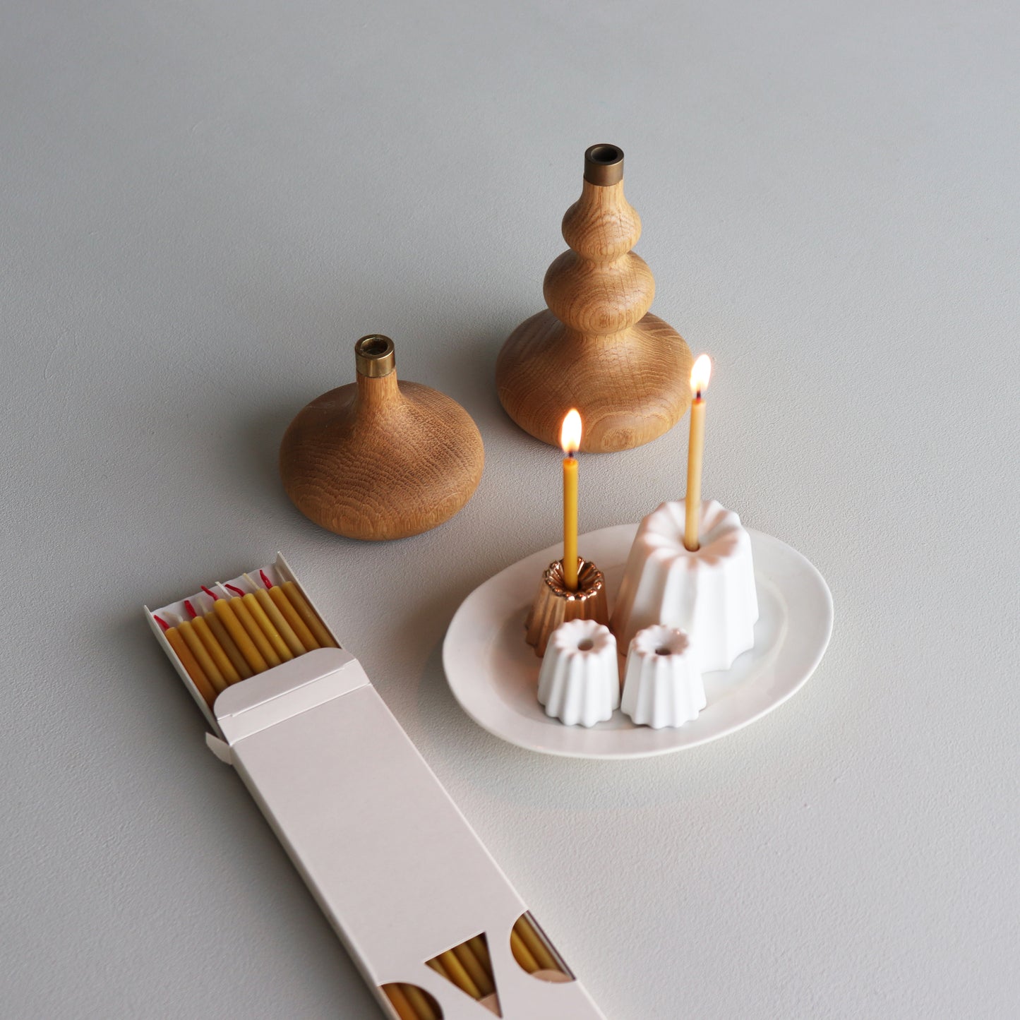 リトアニアのOVOthings(オボシングス)の純粋な蜜ろうだけをつかったバースデーキャンドル、スリムキャンドル、クリスマスキャンドルに合わせてつくられた大きめサイズのカヌレ型のキャンドルホルダーです。