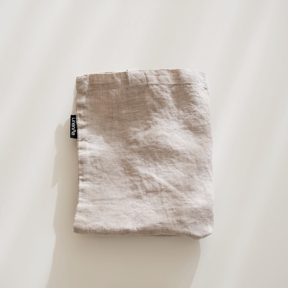 そして個人的に惚れ込んでしまったのはこのシンプルな形!きっとショップのエコバッグが好きで集めているような方にはかなりしっくりくる形かと。ヨーロッパ亜麻®商標も取得している上質なリネンなのでこれだけシンプルな形でも素材の美しさが際立ち、スタイリングのアクセントになってくれますよ。