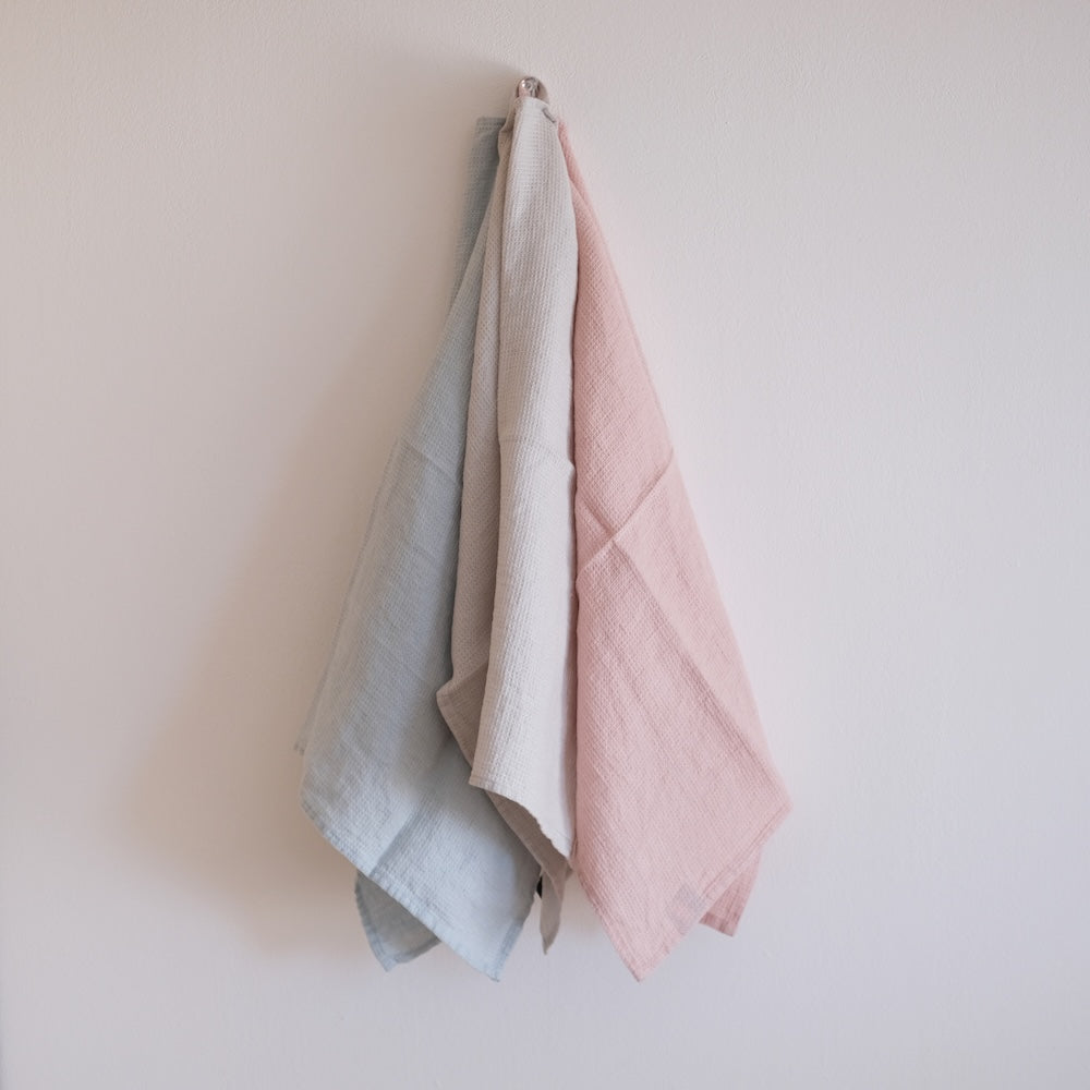 こちらはそんなリネン素材の良さを存分に感じられるリネンワッフルタオル。ワッフル地なのでほどよいボリューム感もあり、毎日ガシガシ使える頼れるタオルです。
