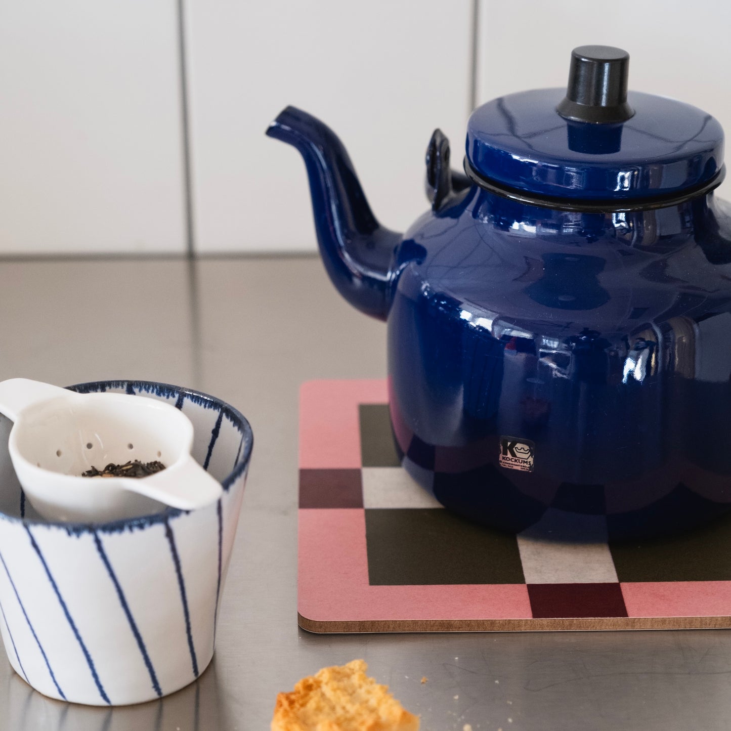 コーヒー、紅茶、台湾茶、日本茶、、、意外とどんなお茶の時間にも寄り添ってくれる色使いで、ポットとの組み合わせを考えるのも楽しくなるようなアイテム。夏は水滴のつくウォーターボトルを置いたり、冬はグラタンやお鍋をのせたり、インテリアとして花瓶をおいて飾ってもかわいいですよ◎